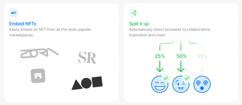 用户创作的内容存储在Arweave,可实现内容的永恒储存。创作者可以将内容铸造成NFT并通过社交媒体分享,供粉丝收藏,NFT也可通过Mirror拍卖。