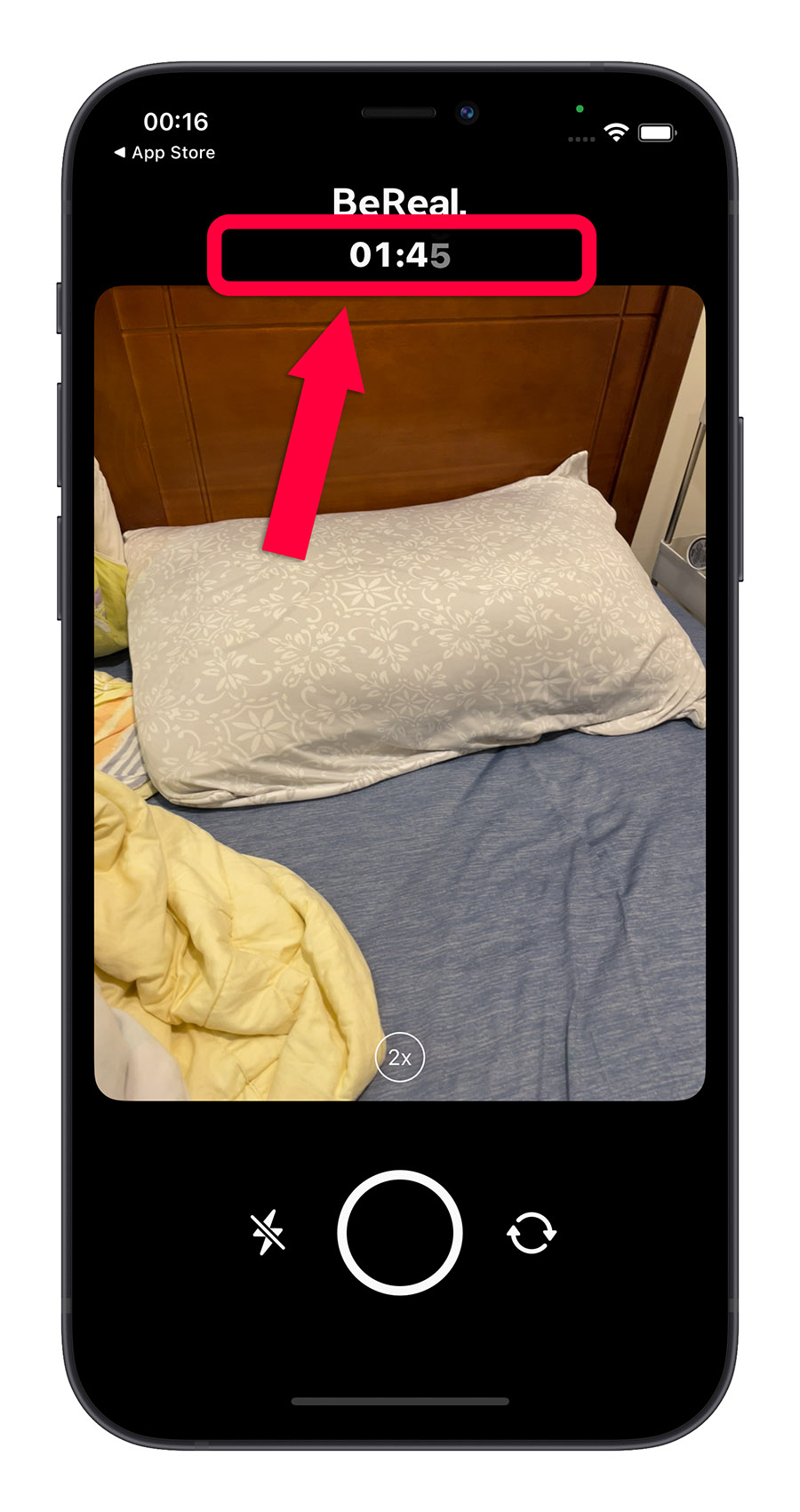 如果你选择发文,那麽你只有 2 分钟可以做这件事情,《BeReal.》的 App 上会开始倒数,虽然说如果你没有在倒数的时间内完成拍照、发文,在这之後还是可以发文,那麽你就会被注记「迟交」的记号。