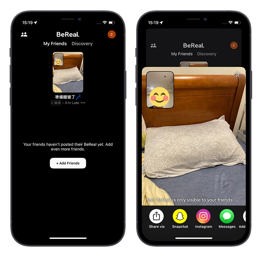 但或许就因为这样的限制,让使用者觉得可以更加真实的展现自己,也可以看到朋友们更真实的样子,而不像 FaceBook 或是 IG 看到的尽是漂亮的摆拍照片。