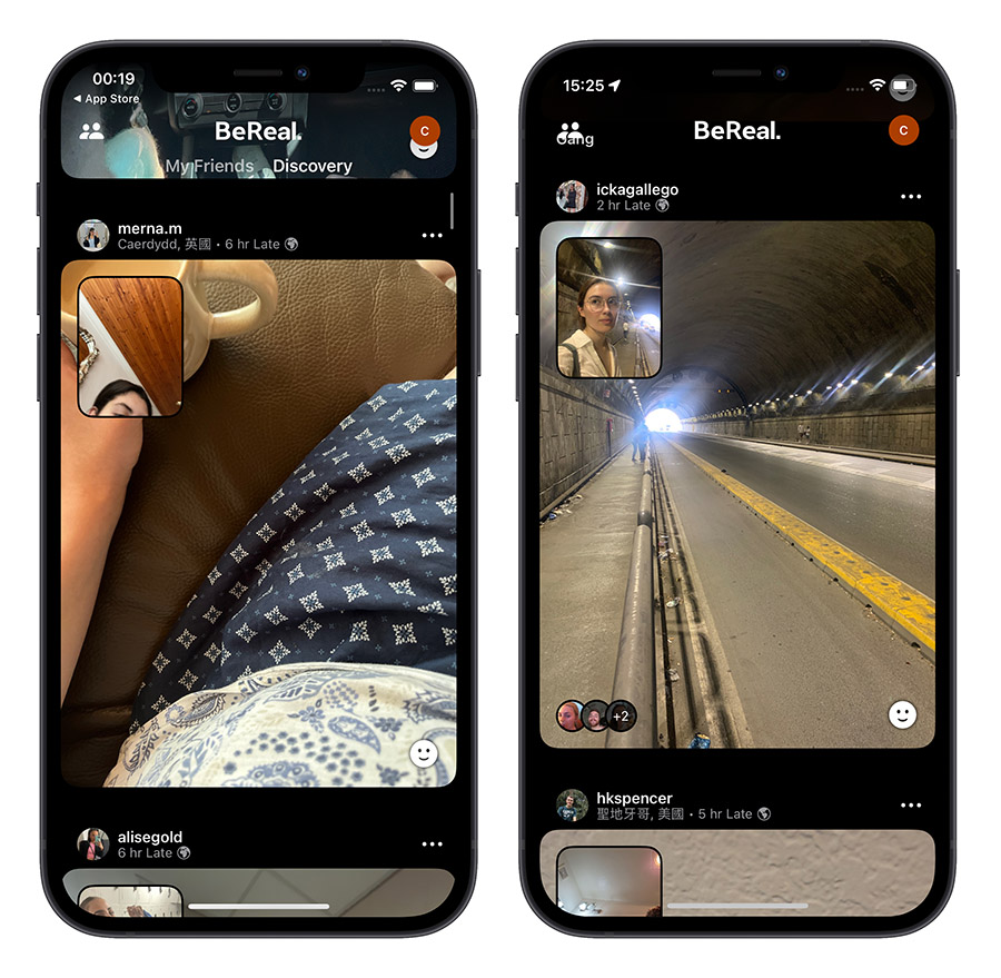 ▲ 《BeReal.》上可以看到每个当下都在做什麽