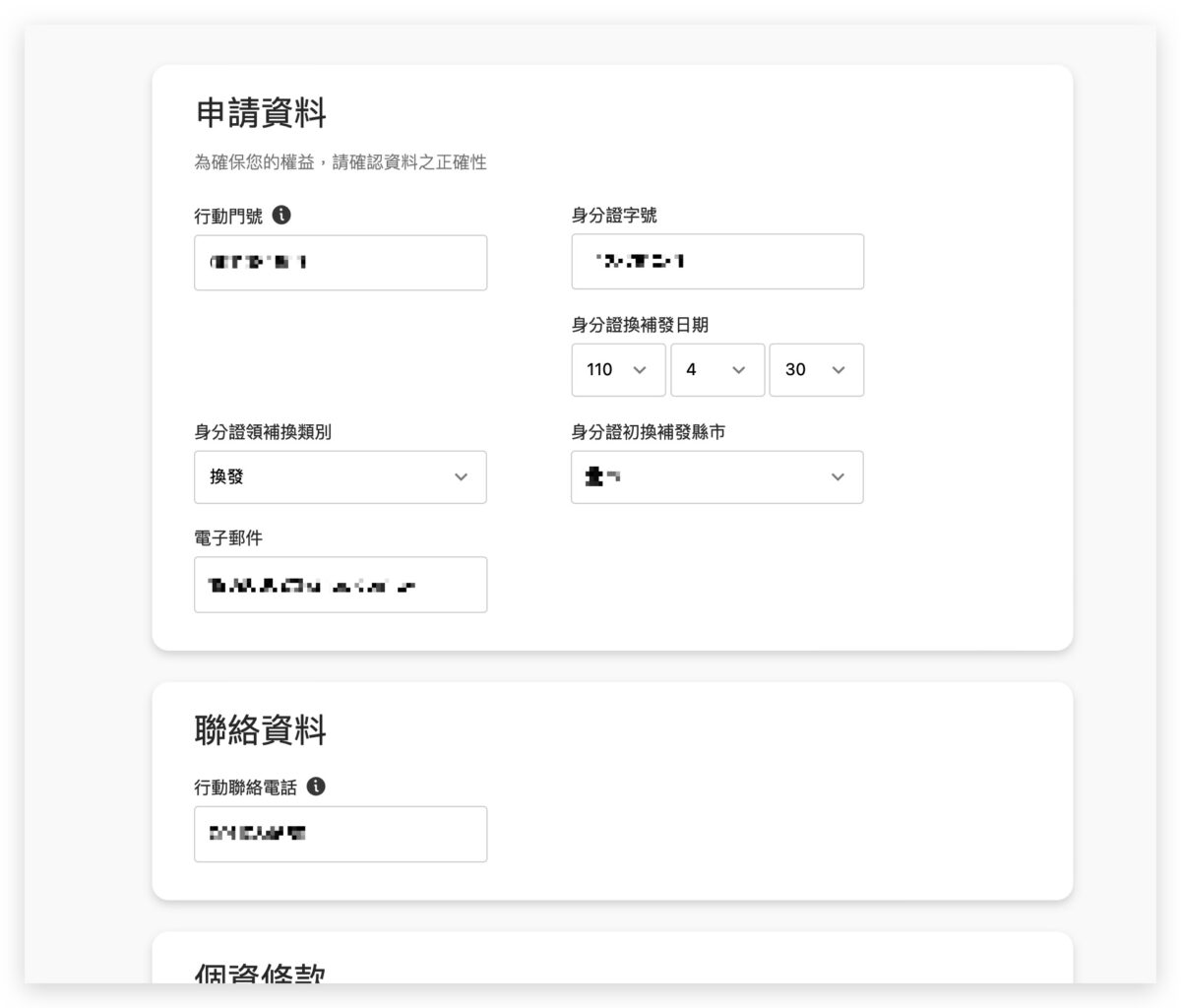 接着会要求你把个人基本资料填写完毕,部分资料会直接从你刚才上传的照片中带出来,其他像是手机、电子邮件这类的资料就手动输入。