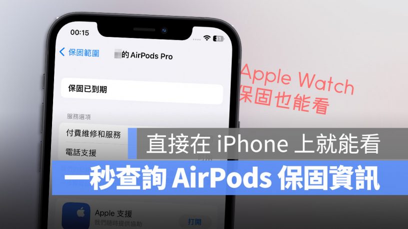 今天我们就要教大家一个更快速、简单查询 AirPods、AirPods Pro、AirTag 或 Apple Watch 保固资讯以及保固到期日的技巧。