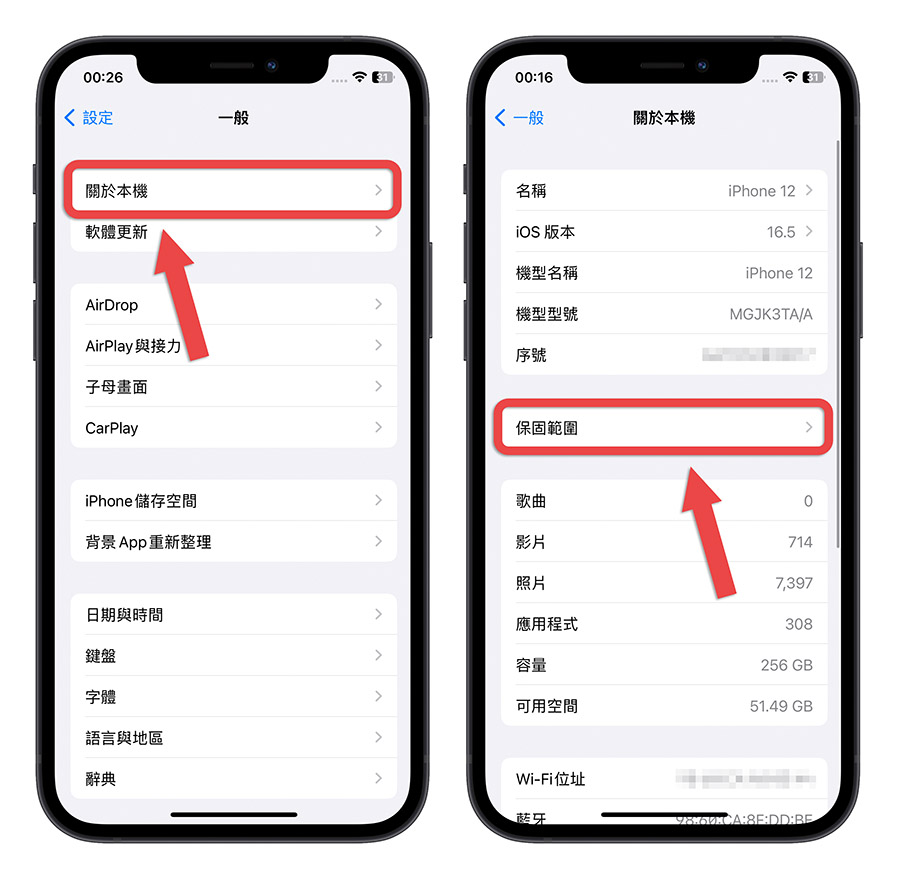更新到 iOS 16.4 以後,你可以从「设定」App 中打开「一般」这个选项,然後点选「关於本机」里面的「保固范围」这个功能。