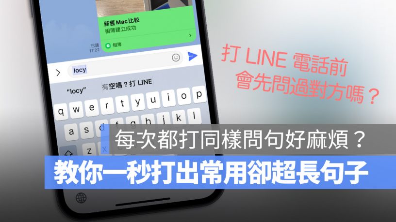 利用这个方法,你就可以在需要拨打 LINE 电话的时候,透过 iPhone 的替代文字功能简单输入几个英文字或是数字,就可以很快的把「我要打电话给你罗」的讯息传给对方。