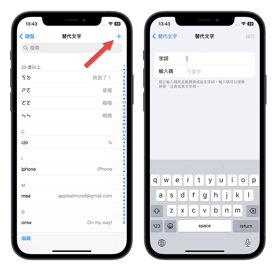 这时候就可以透过 iPhone 替代文字功能,让你用缩写的方式输入这些内容。