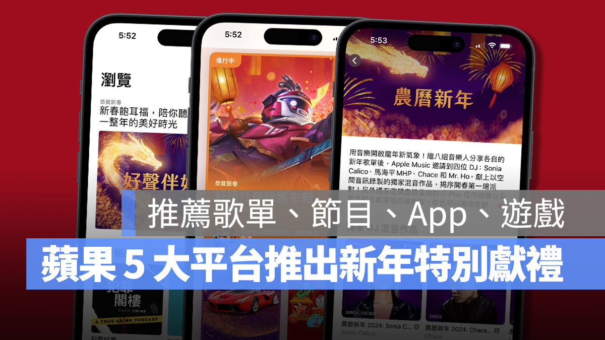 面对即将到来的新年连续假期,苹果的 5 大平台服务涵盖 App Store、Apple Music、Apple Podcast、Apple TV+、Apple Arcade 皆有推出春节特别献礼,不论是出游走春或是在家耍废都能体验这些特别内容!