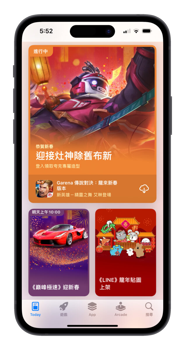 首先在 App Store 方面将每日更新推荐内容,会把多款 App 与游戏的新年特别活动与优惠整理成资讯卡,方便你挖掘惊喜。