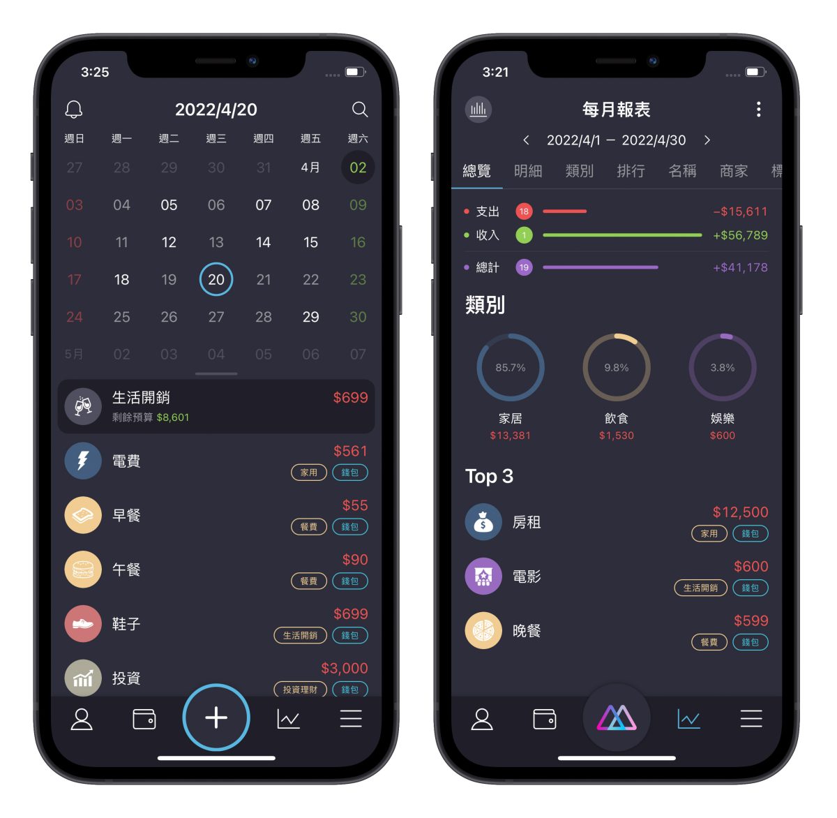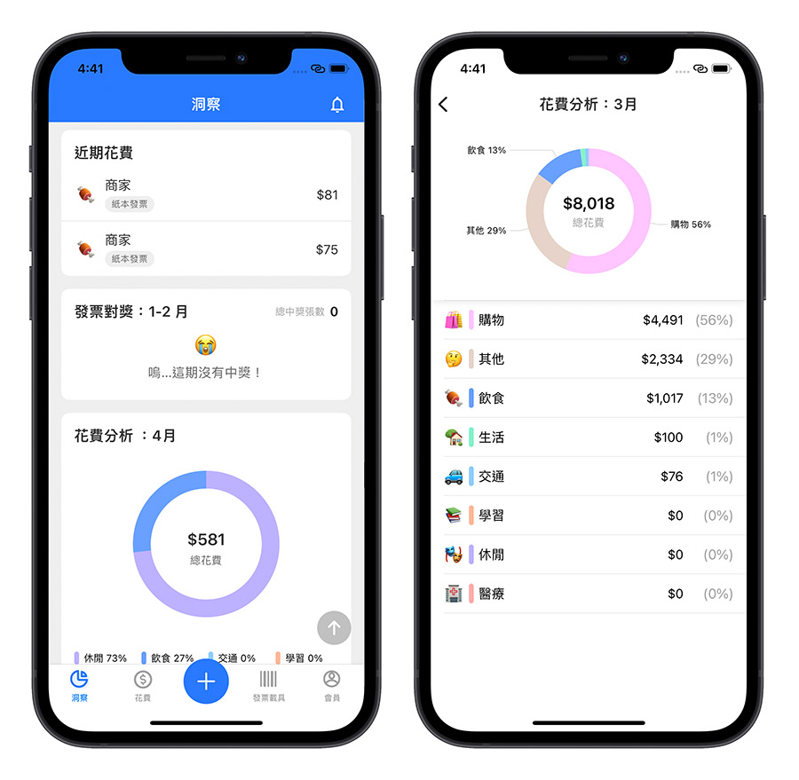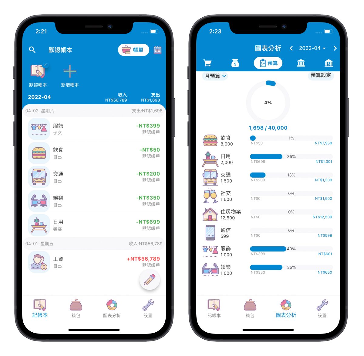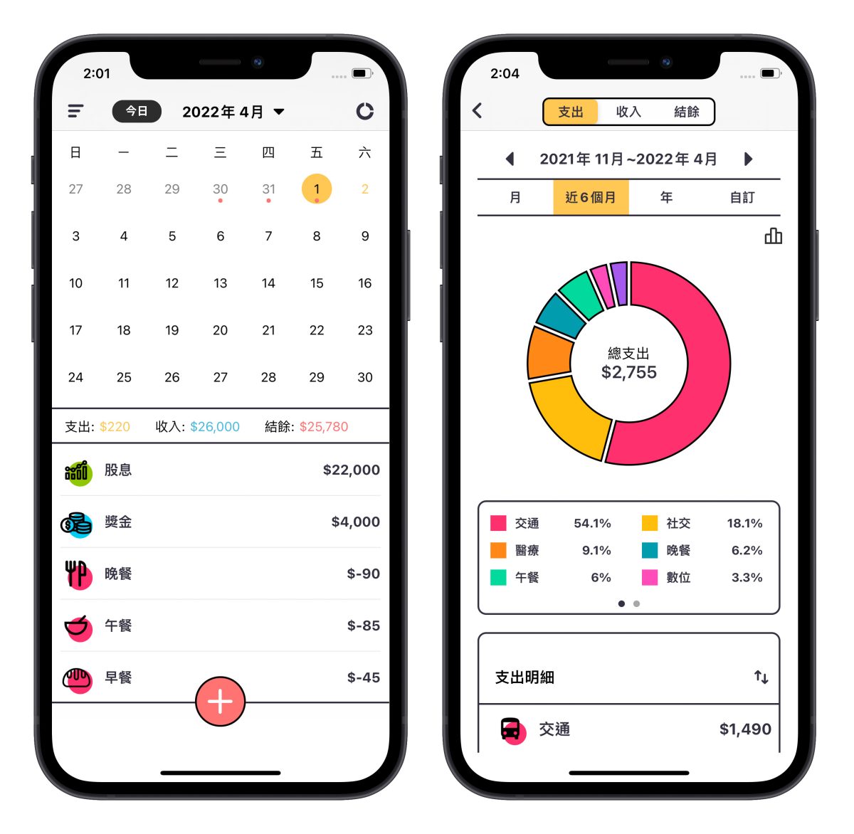 简洁、清新的报表画面,看着过去的花费也可以非常的清楚,对於新手、想要简单完成记帐的人来说,是一款非常推荐的记帐理财 App。
