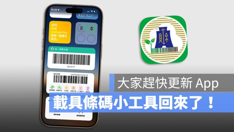 所以大家只要把《统一发票兑奖》App 更新到最新的版本後,就可以再重新使用载具条码 Widget 小工具了。