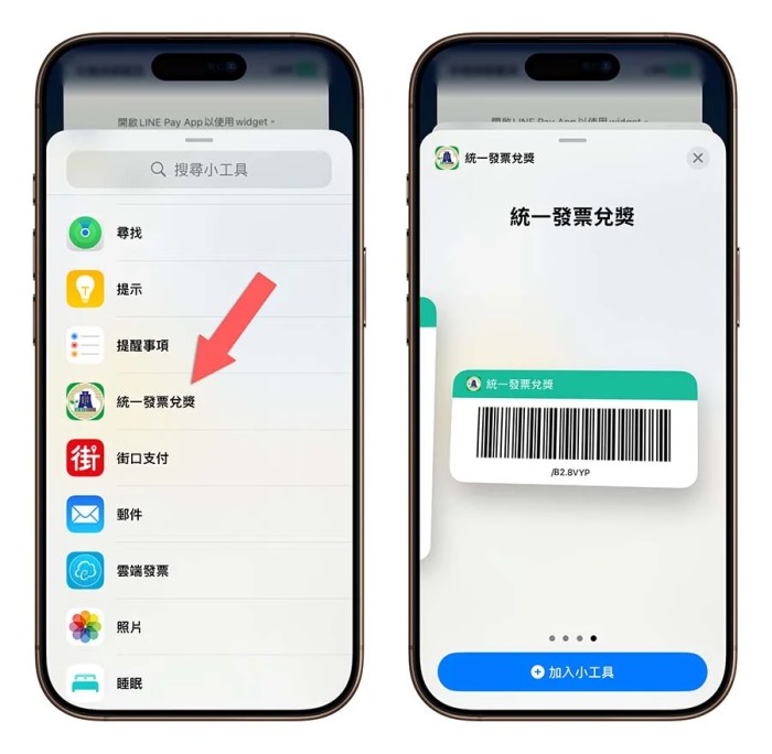 这样就可以重新把《统一发票兑奖》App 的载具条码小工具加回来,无论是在主画面滑出最左边的 Widget 小工具页面,或者是在锁定画面下往右滑叫出 Widget 小工具页面,都可以快速显示载具条码。