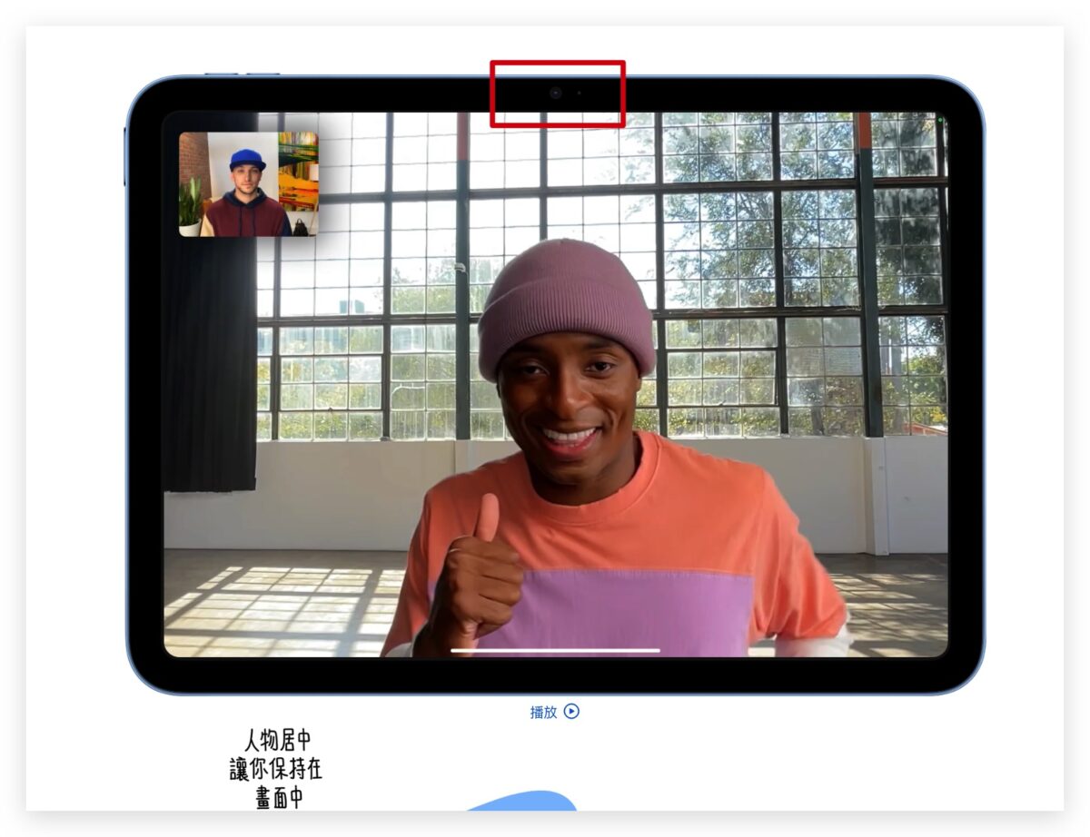 在前镜头的部分,这次 iPad 10 把前镜头设计为横向 iPad 模式,也就是当你把 iPad 拿横的时候,前镜头会在上方的中间,但如果你拿直的,那前镜头的位置就是在 iPad 10 的右边。