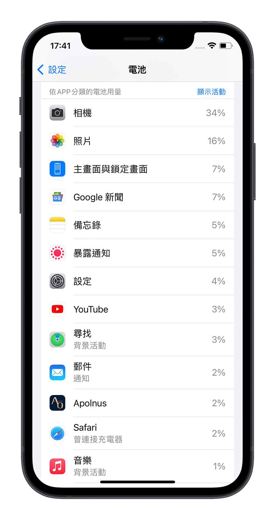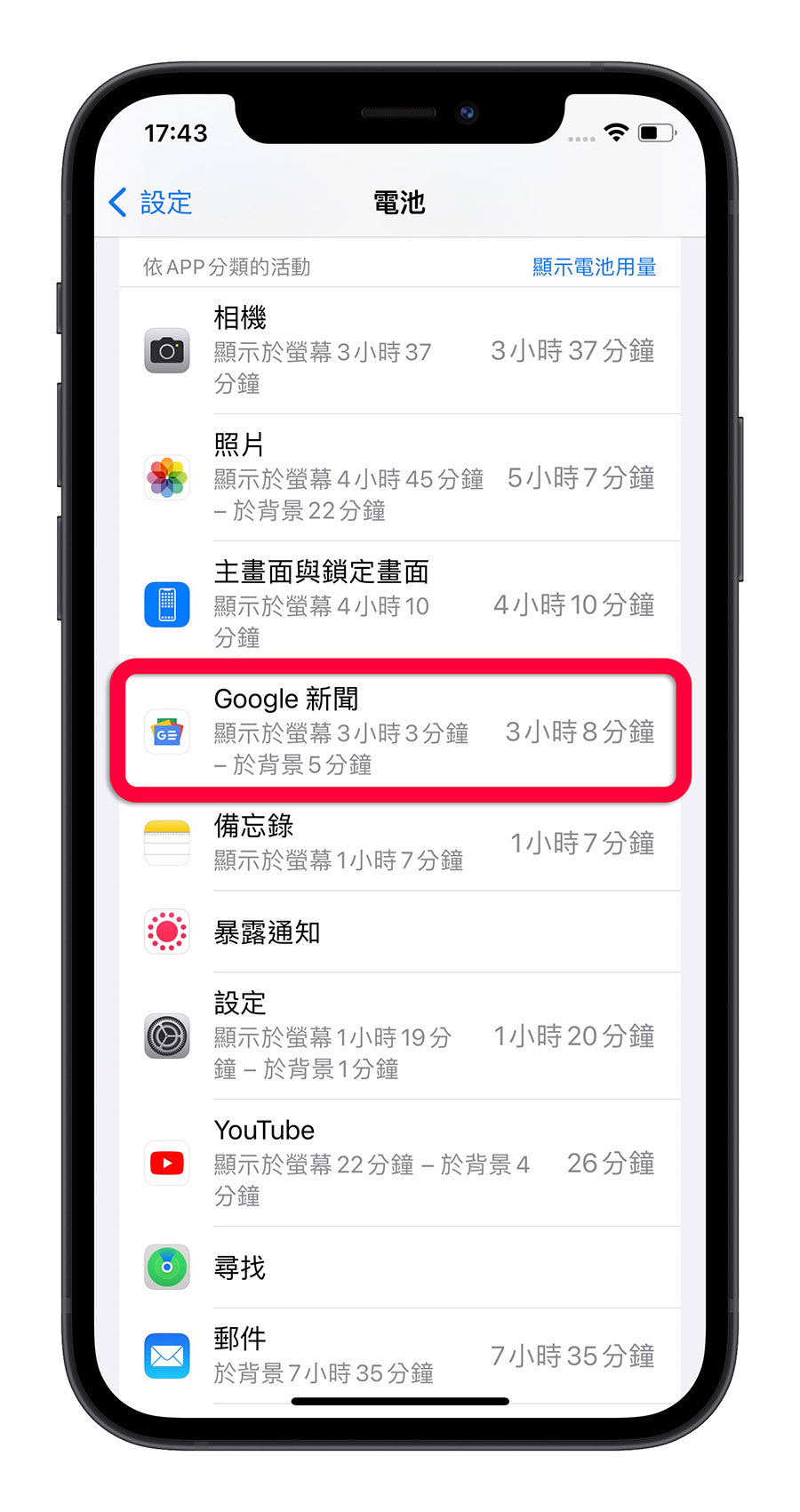 如果你确定自己没有使用某一个 App,萤幕显示时间也不高,但还是有耗电的话,那多半就是背景执行 App 在耗电。