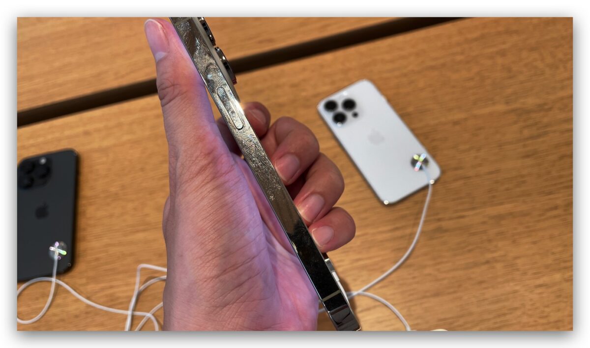 但是就算边框比较黑,太空黑的 iPhone 14 Pro 边框依然是容易吃指纹的家伙,这点只要是拿 Pro 版 iPhone 的人就要有自己有心理准备了。