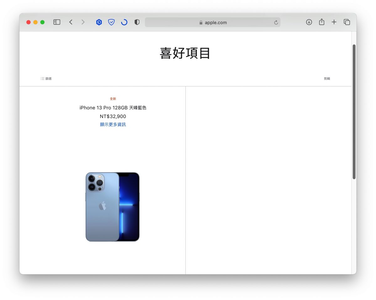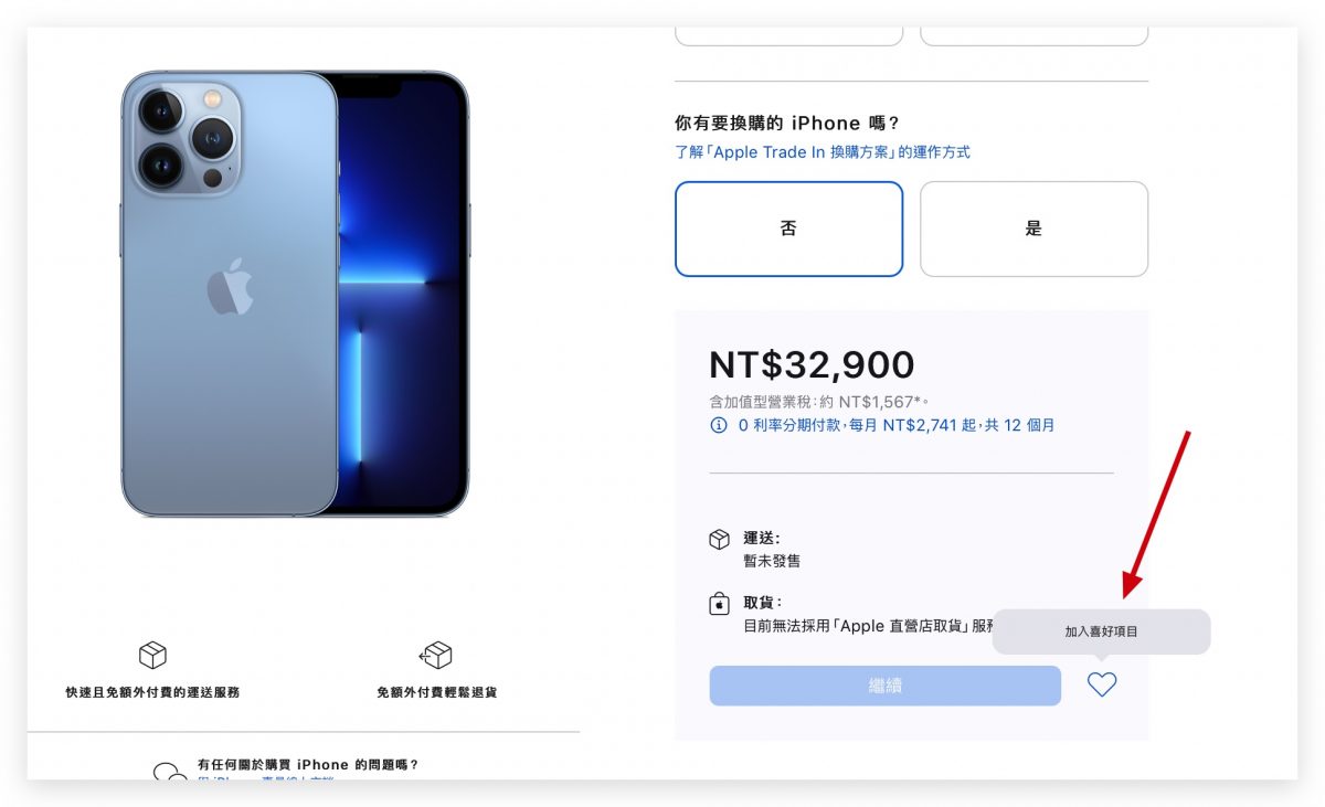 在 iPhone 上的 Apple Store 想要快速预购到第一波就能拿到的 iPhone 其实做法概念也是一样的,就是先把要的规格选好,然後加入「喜好清单」内,到时候就可以直接结帐。