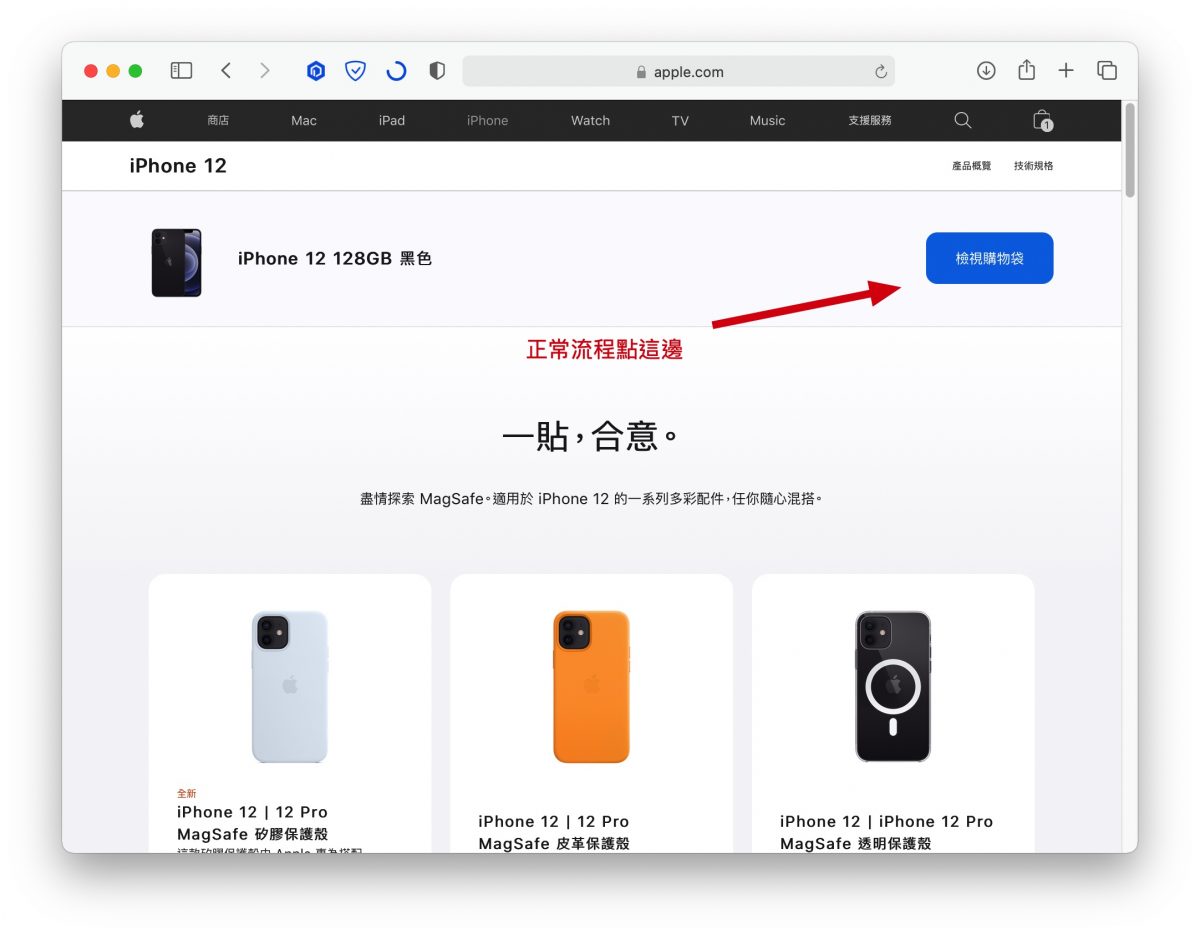 接着按照正常的流程走的话,Apple Store 的系统会让你选择「检视购物袋」後再进行结帐。