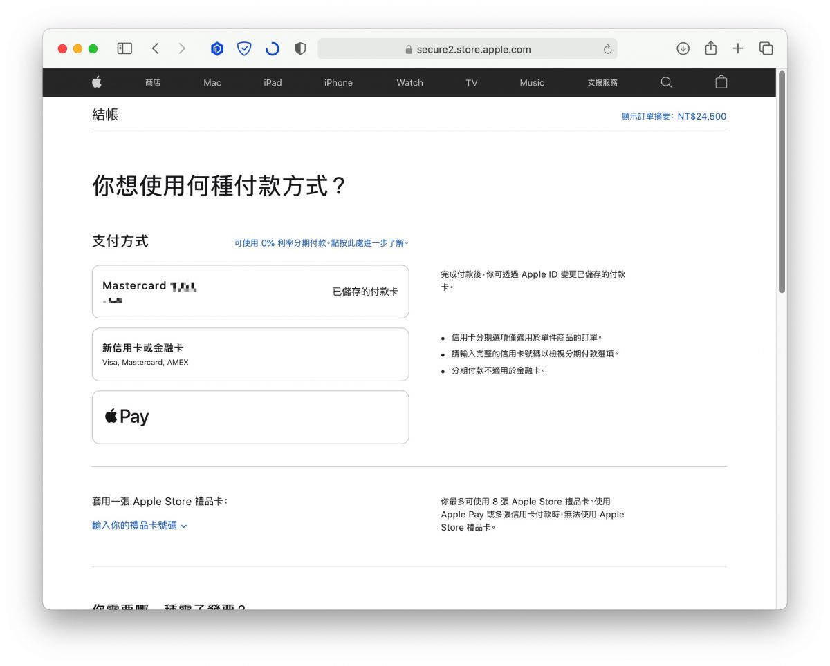 如果你没有支援 Apple Pay 的信用卡,那也可以提早把信用卡号储存到 Apple ID、自动填写功能中,不过这样还是要手动输入安全码就是了。
