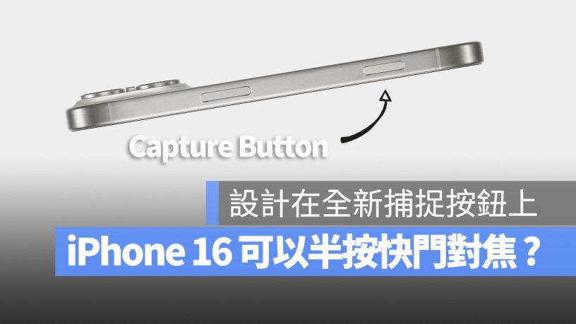 而 iPhone 16 据传会有一个全新的「Capture Button」捕捉按钮,根据外媒的消息指出,这个按钮预计会设计在侧边按键(俗称的电源键)下方,而且带有压力感测的能力,所以能够根据使用者按压这个 Capture Button 的力道,来决定现在是按快门还是在对焦。
