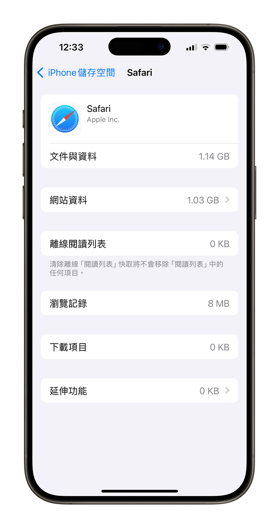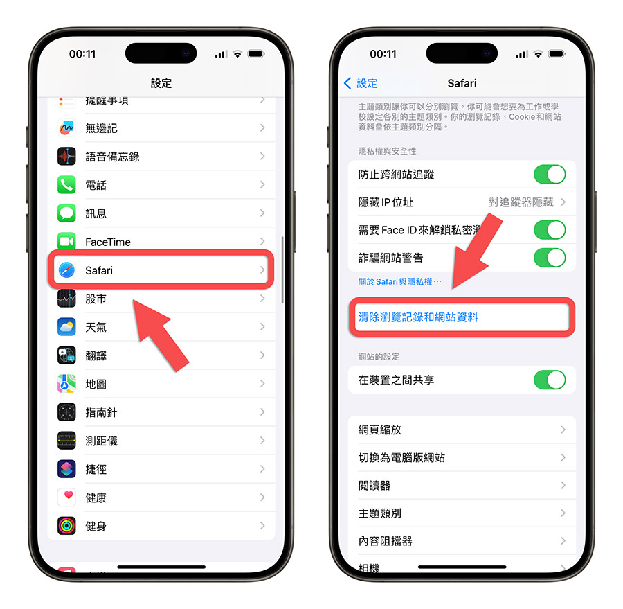 这个方法除了清除 iPhone Safari 的快取资料以外,包含浏览纪录、Cookies 档、网站记忆的帐号密码都会被删除。