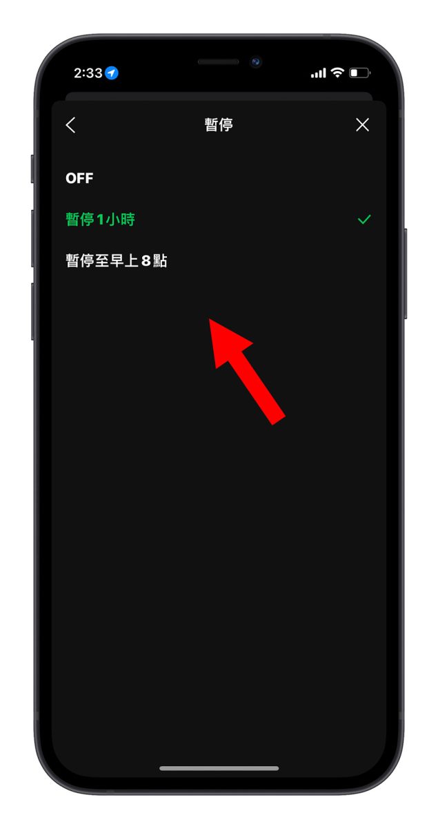 上面的步骤选择完以後,就完成关闭、暂停 LINE 通知提醒的设定。