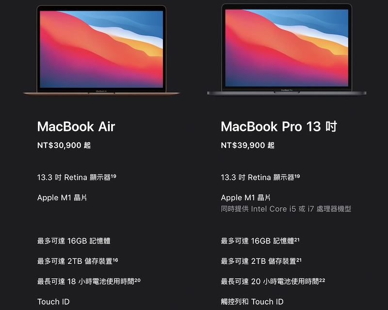 去年底苹果推出 M1 MacBook Air(金、银、太空灰)、MacBook Pro 13(银、太空灰) 新机型,最具特色是采用自家 Apple M1 处理器。而两者这次规格相近,却价差 8000元,究竟差在哪?